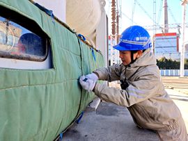 全員加班為變電站設備做防凍保溫,為網(wǎng)控變電站的關(guān)鍵開關(guān)設備“穿”上定制保溫棉衣;另一路由經(jīng)驗豐富的老員工牽頭,對空壓機管路及附屬設施加裝保溫層,”班長趙詩宇一邊指導年輕員工郝巖包裹開關(guān)接線口。
